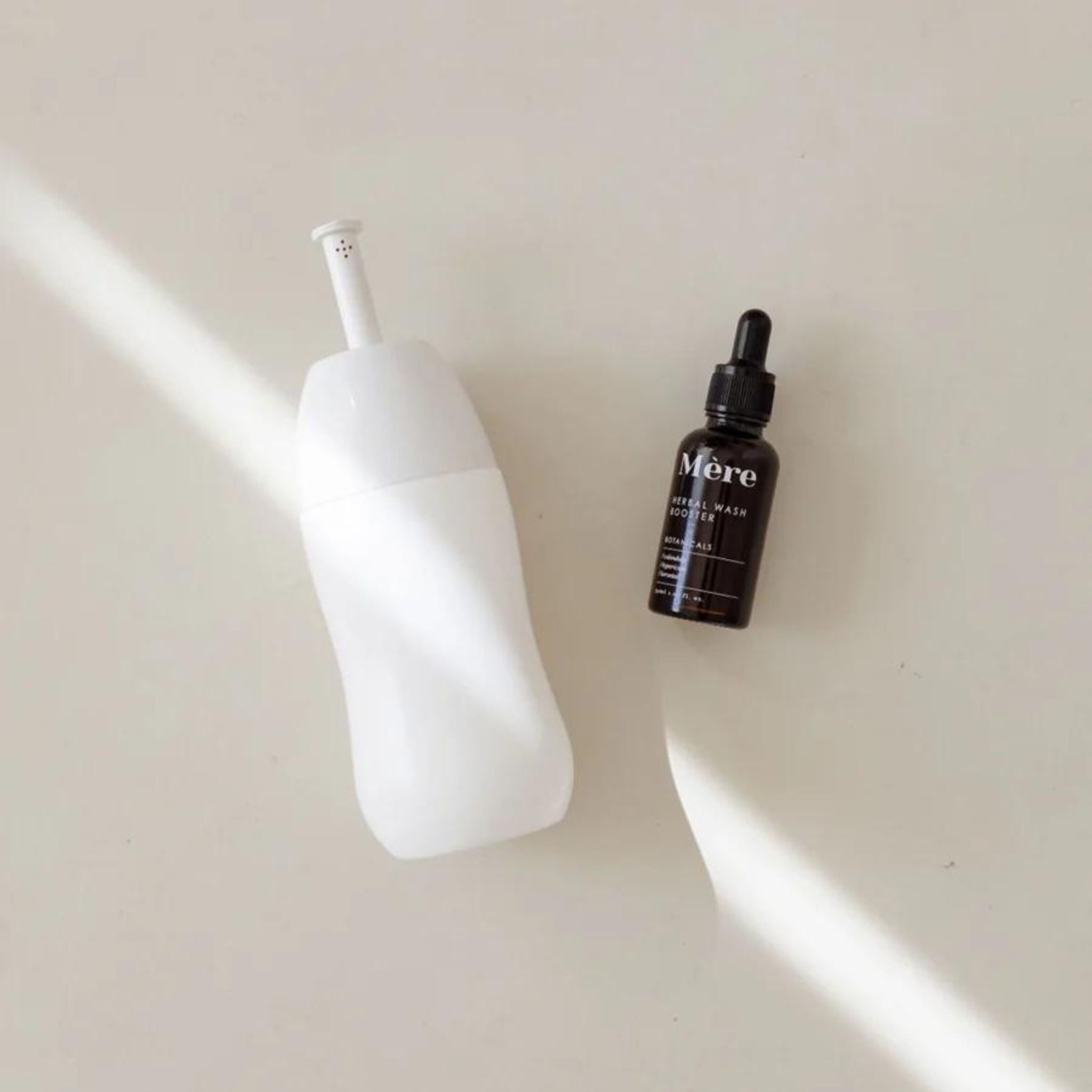 Discover ultimate postpartum relief with the Mere Botanicals Peri Bottle + Herbal Booster. This thoughtfully designed peri wash bottle makes postpartum cleaning easy. It offers both soothing and cleansing benefits after childbirth. The bottle enhances hygiene and provides a convenient way to cleanse the perineal area, reducing irritation and promoting cleanliness.